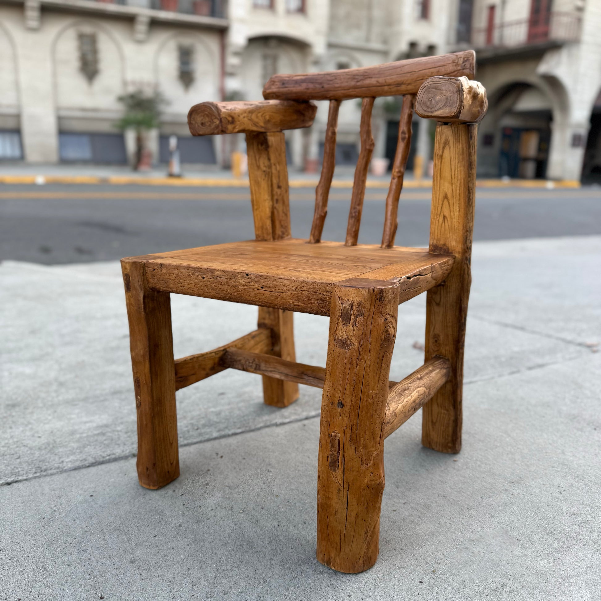 The Hug-Rustic Handmade Reclaimed Wood Armchair – Antique Jujube & Elm, Vintage Farmhouse Accent, Solid Primitive Chair