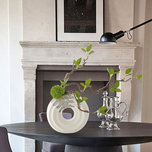 15" Artificial Tree with White Ceramic Vase – Modern Faux Plant Decor for Indoor Spaces
