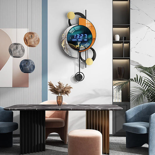 26.4" LED Silent Wall Clock with Multi-Function Display and Voice-Activated Pendulum